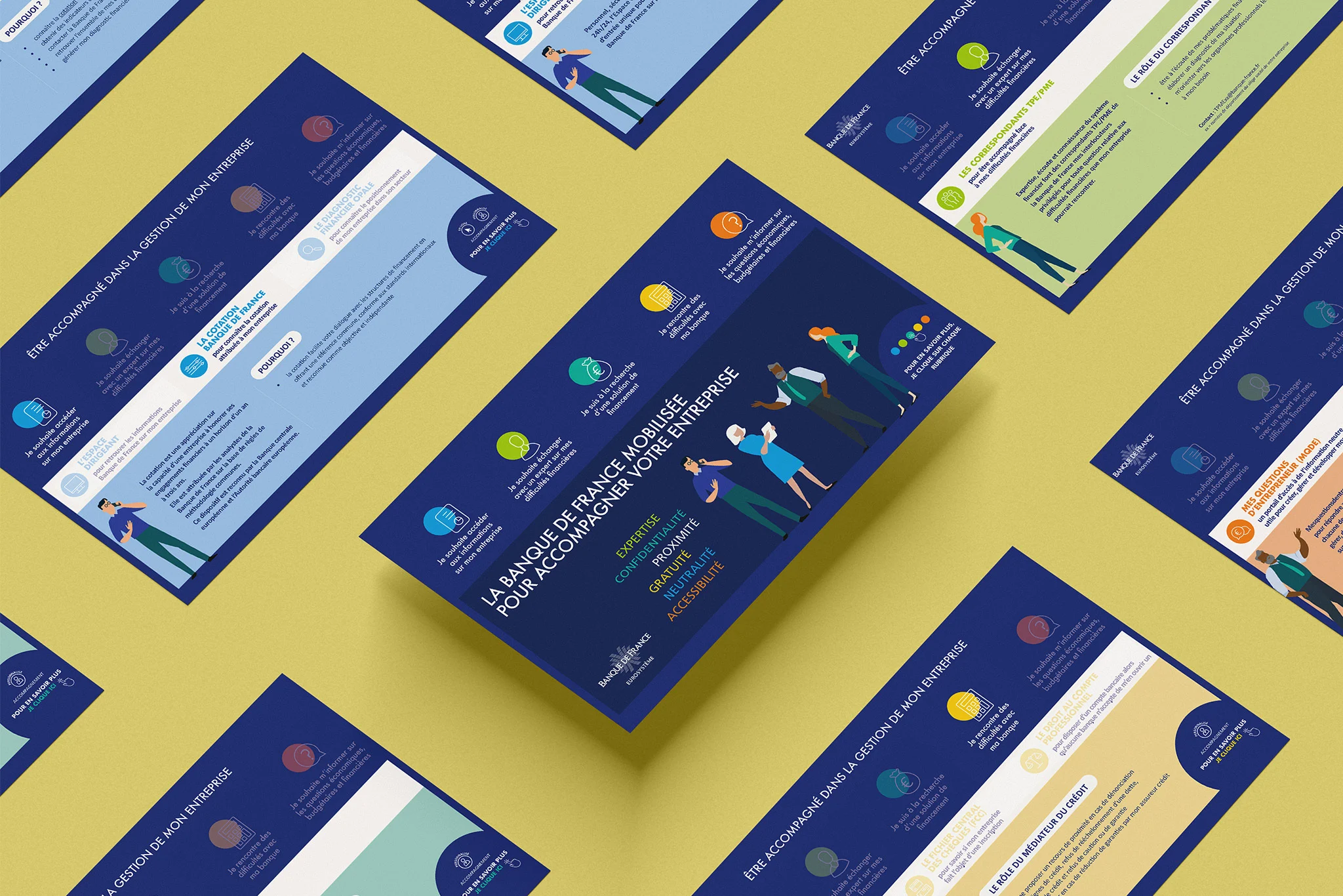 Une identité visuelle déclinable : Création d'un concept graphique spécifique, respectant scrupuleusement la charte de la Banque de France, mais suffisamment flexible et moderne pour s'adapter à tous les supports.